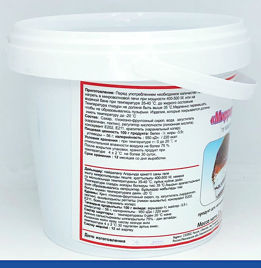 Применяется для покрытия и декоративной поверхности кондитерских и хлебобулочных изделий: пирогов, тортов (в том числе - кремовых), пирожных - в том числе нарезных), фруктов, вафельных картинок.