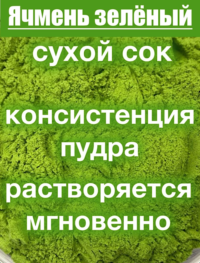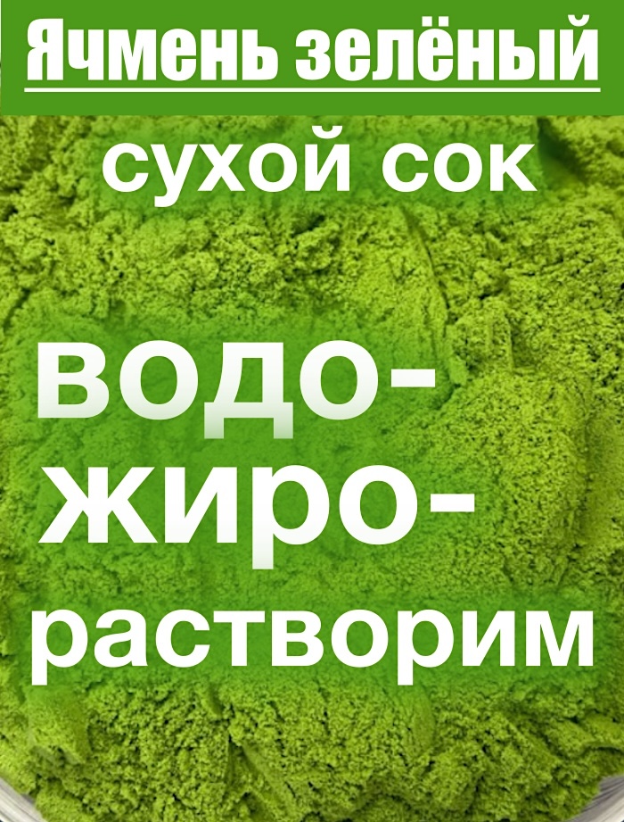Краситель натуральный пищевой сухой молодых побегов зелёного ячменя, 100% натуральный сублимированный сок ячменя, полученный методом распылительной сушки, консистенция пудра, растворяется мгновенно. Придаст продукту нежный зелёный цвет.