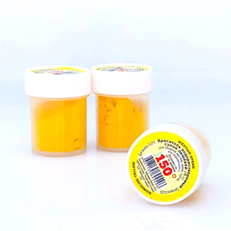 Краситель водорастворимый ЖЁЛТЫЙ Хиниловый (Яркий) сухой пищевой 150º Bake!™ - это порошок синтетического происхождения без запаха, не оказывает вкусового воздействия.